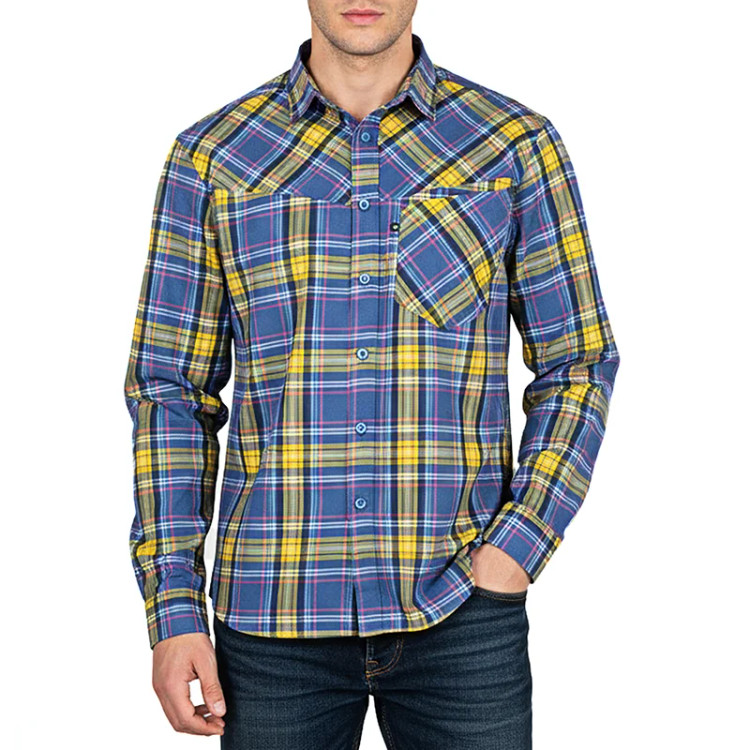 پیراهن چهارخانه آستین بلند مردانه طرح هیمالیا آبی وزرد