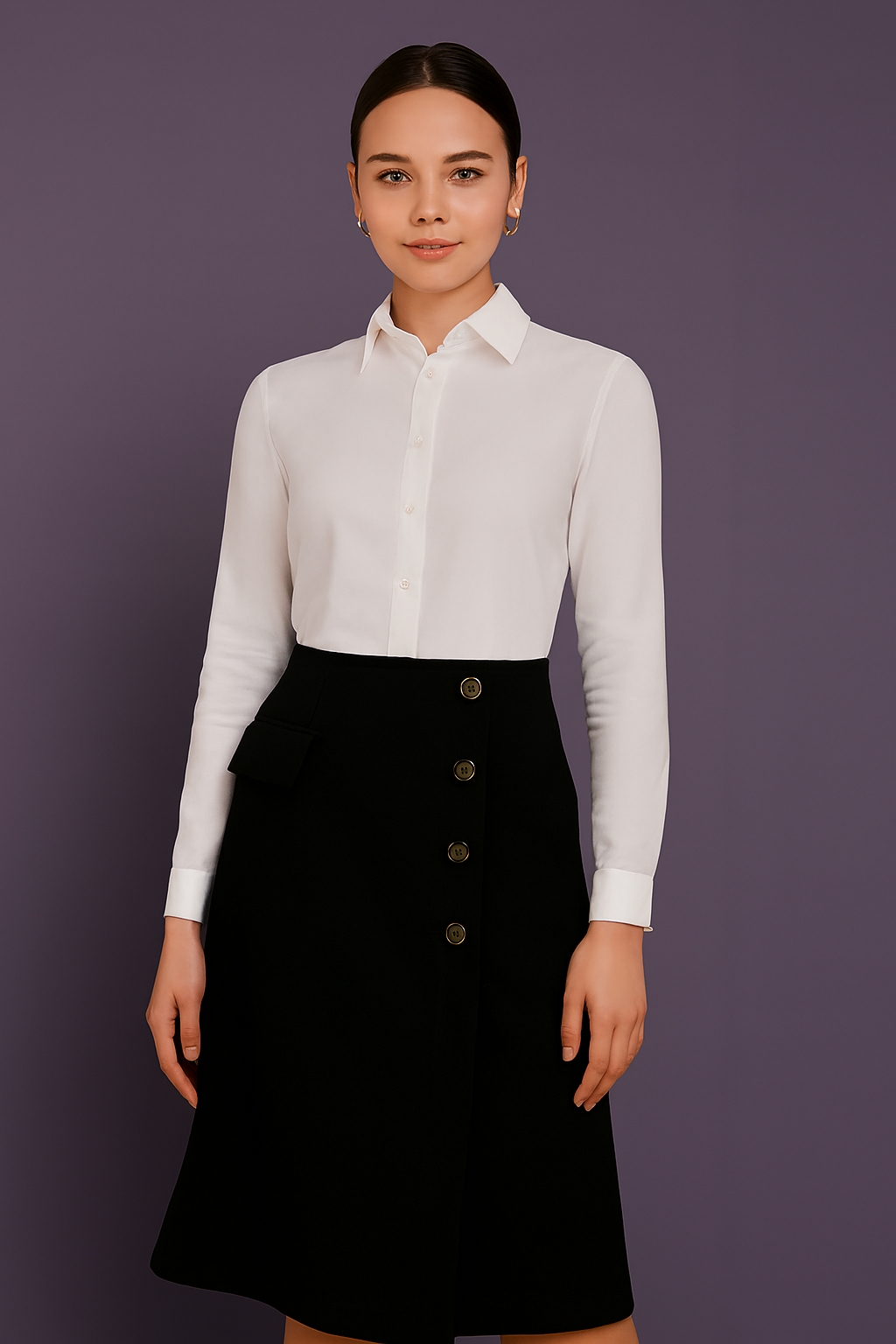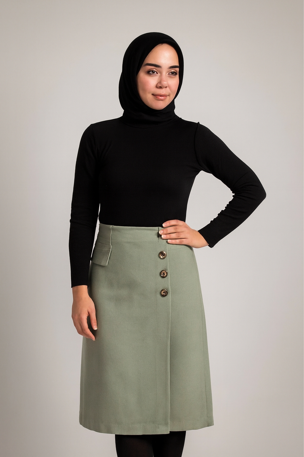 طراحی جلوباز همراه با دکمههای خاص، این مدل را از دامنهای ساده بازار متمایز کرده و آن را مناسب استایلهای روزمره، اداری و نیمهرسمی کرده است. رنگبندی خنثی و ترندی، ست کردن این دامن را با انواع مانتو، شومیز، بافت و کت زنانه بسیار آسان میکند.