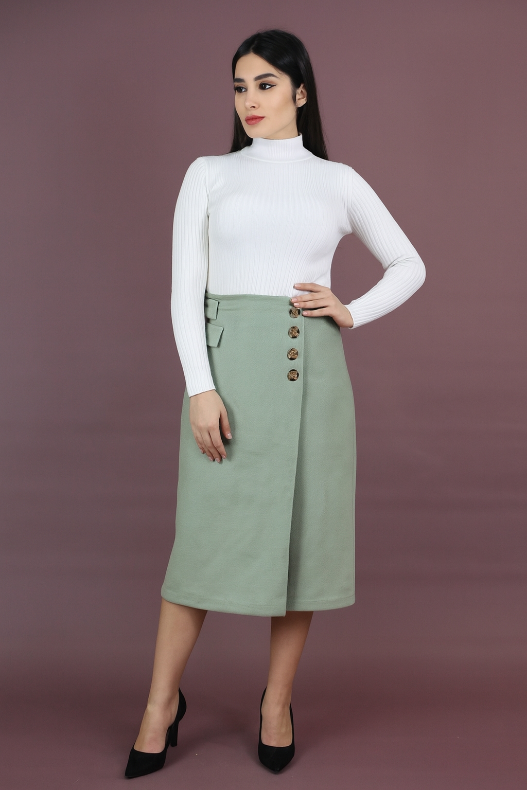 دامن زنانه فوتر دکمهدار جلوباز | خرید دامن زمستانی شیک و ترندی