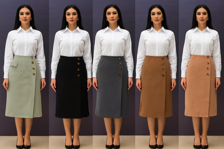این دامن را میتوانید با شومیز سفید و بوت مچی برای استایل رسمی، یا با بافت کوتاه و نیمبوت برای استایل روزمره پاییزی ست کنید. همچنین ترکیب آن با مانتو کتی، ظاهری شیک و حرفهای برای محیط کار ایجاد میکند.